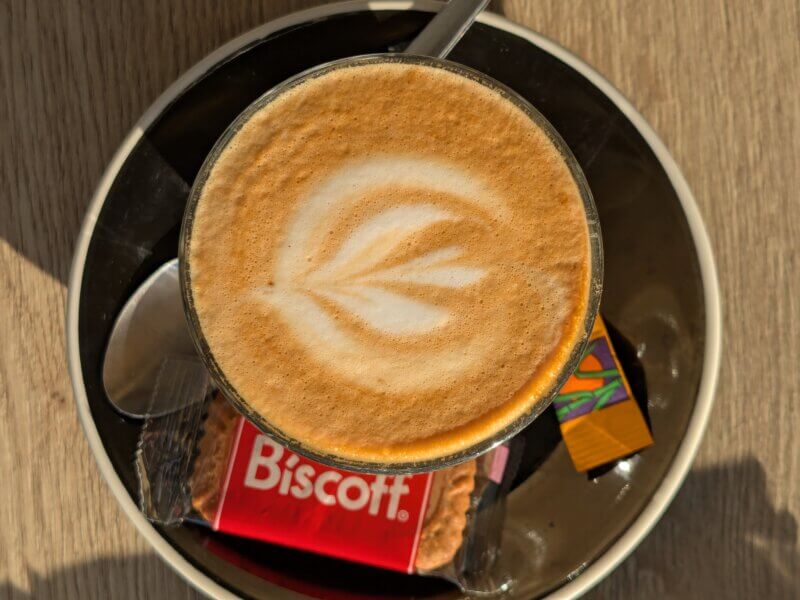 朝の澄んだ空気の中、パノラマビューを眺めながら味わうオージーブレックファストとカフェラテ。美しいビーチと街並みを見渡せる、贅沢な時間です。