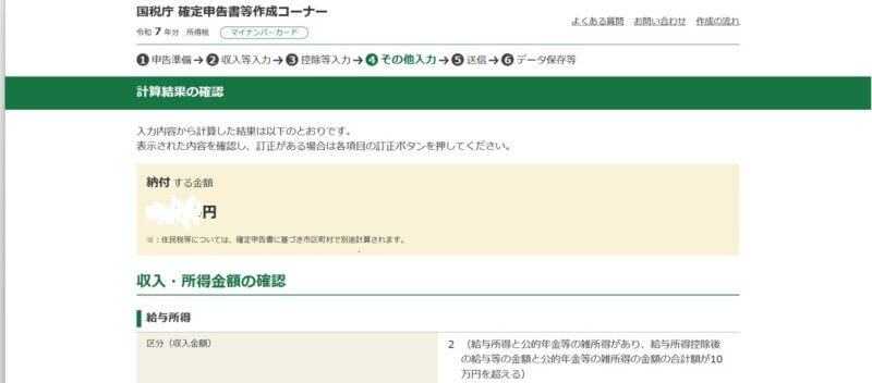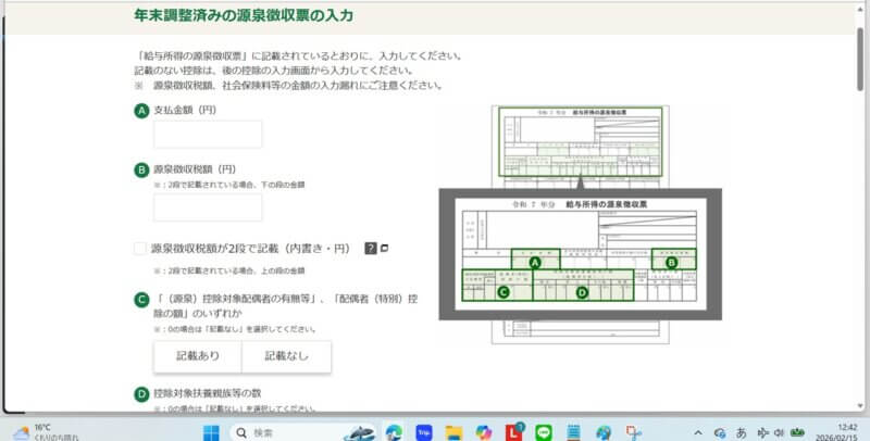 を源泉徴収票の通りに手入力。