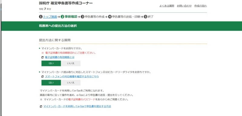 1. 「マイナンバーカードをお持ちですか」→「はい」を選択